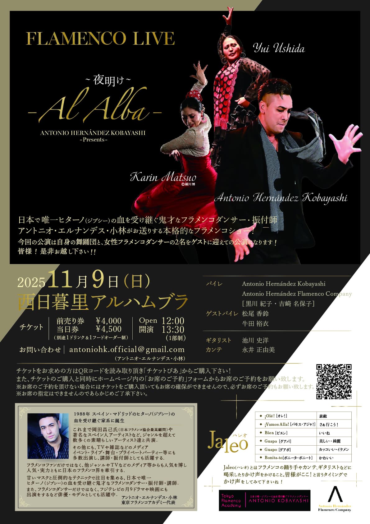 今回の公演は自身の舞踊団と、女性フラメンコダンサーの2名をゲストに迎えての公演になります!