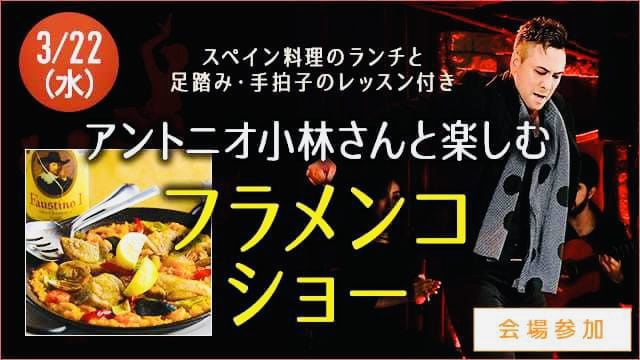 「アントニオ小林と楽しむフラメンコショー 〜スペイン料理のランチと足踏み・手拍子のレッスン付き〜」に