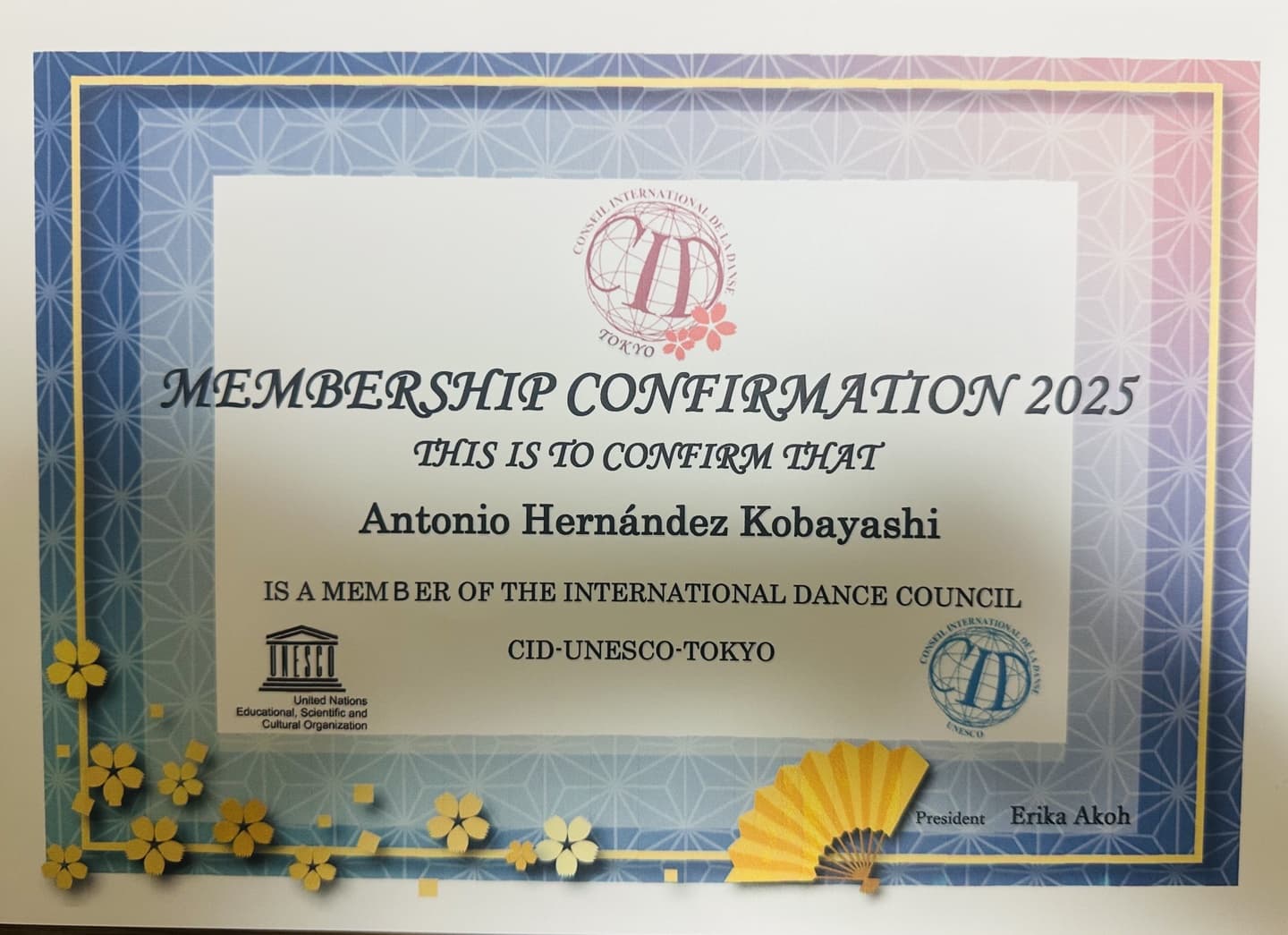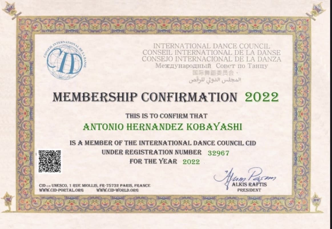 日本のCID UNESCO TOKYO(ユネスコ国際ダンスカウンシル東京)にも入会をし、